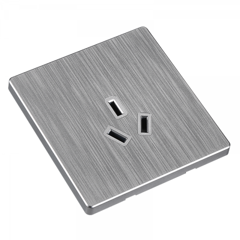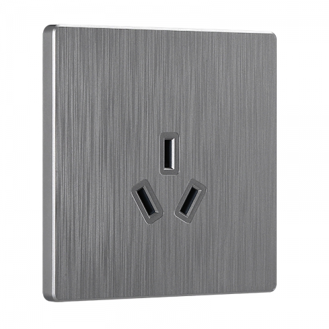 86型三孔16A空调插座家装PC阻燃料 大板拉丝银灰系列